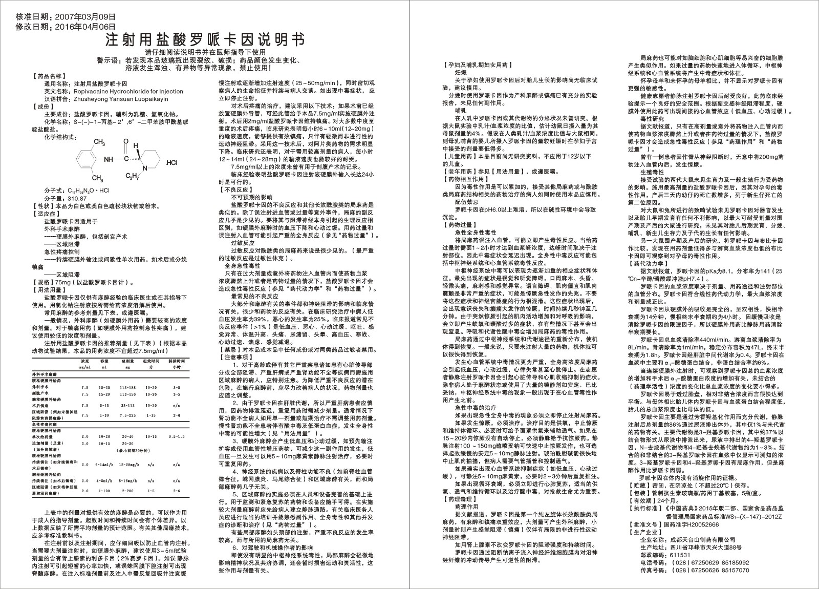 【通用名】注射用盐酸罗哌卡因